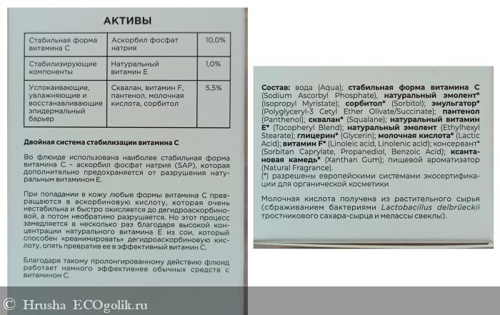 - пантенол - увлажняет, снимает воспаления и позволяет лучше переносить витамин С
