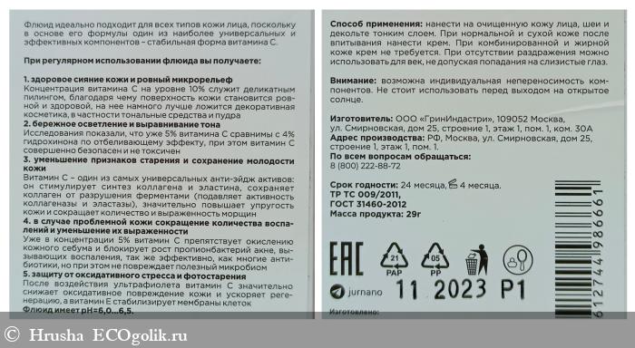 Обещано, что Флюид идеально подходит для всех типов кожи, поскольку в основе его формулы один из наиболее универсальных и эффективных компонентов – стабильная форма витамина С.