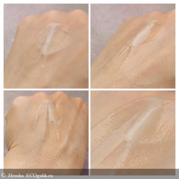Впитывается Флюид быстро - но позволяет насладиться нанесением, не "застопоривается на полпути", ну и без негативных тактильных неприятностей - липкости или жирности - благодаря грамотно подобранной формуле и эмолентам.