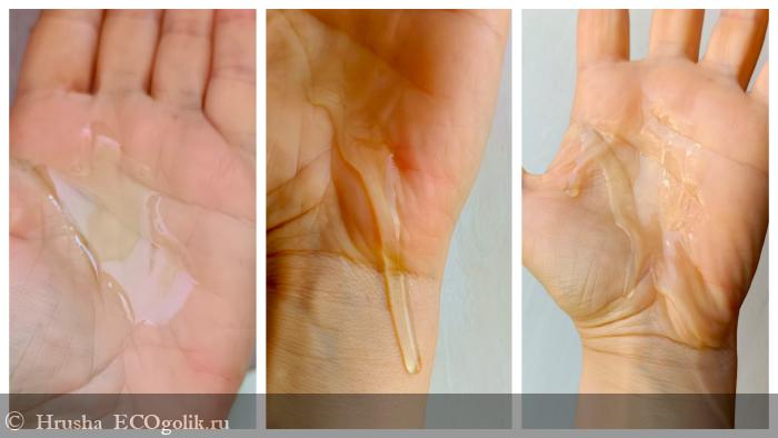 Консистенция оптимально густая, чтобы не убегать быстро, но и легко выдавливаться из флакона.