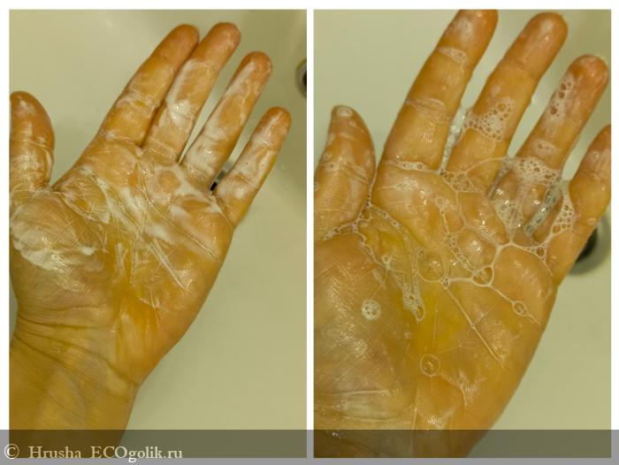 - Во-вторых, он отлично пенится, моет, но не сушит кожу - тут не надо объяснять друзьям из не-эко и особенно мужчинам, что к слабой пенности надо привыкать ради состава.