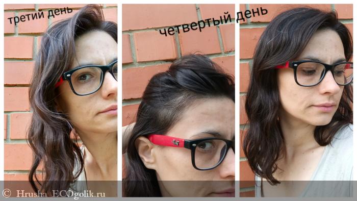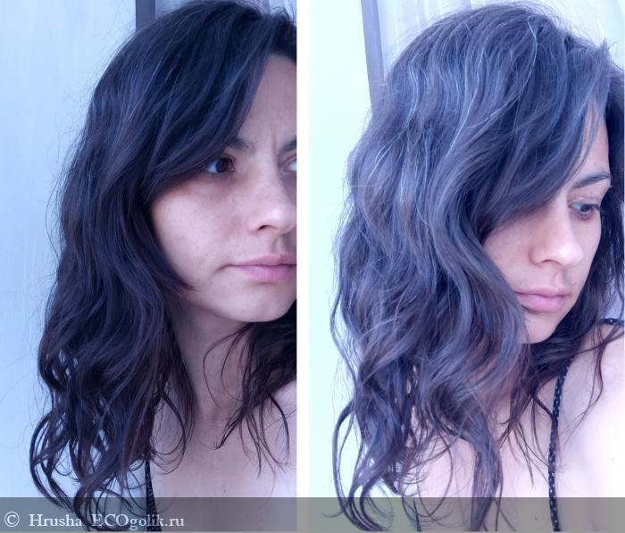Тут я просто прошлась по челке и слегка по длине мокрыми руками после умывания лица и даже не наносила несмывашку.