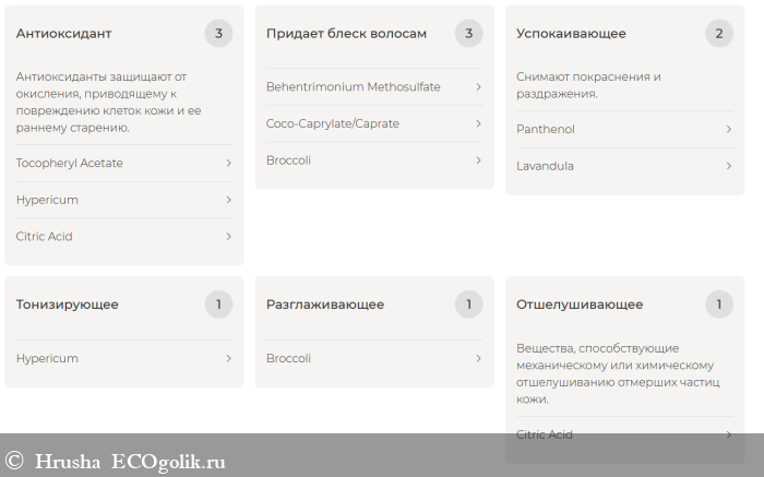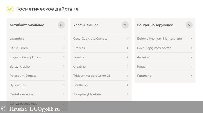 Понятно, что я избегаю очевидных "бяк" - парабенов, пэг и т.п., их тут нет, но еще мне важно отсутствие типичных силиконов - это табу для вьющихся волос, а также другие мои заявленные требования прошли проверку - их работу можно посмотреть по кнопке "подробнее".