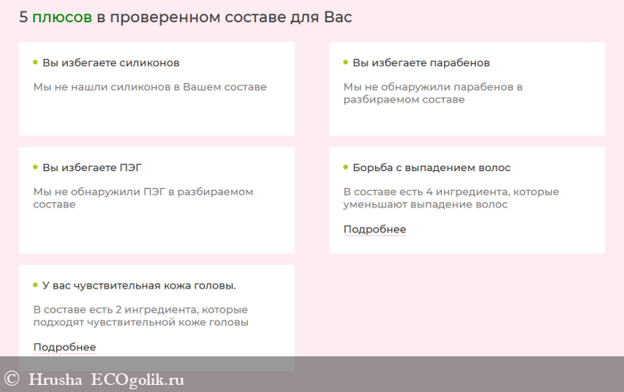 Также в подписке Plus проверка определила нюансы именно по моим требованиям в средствах для волос