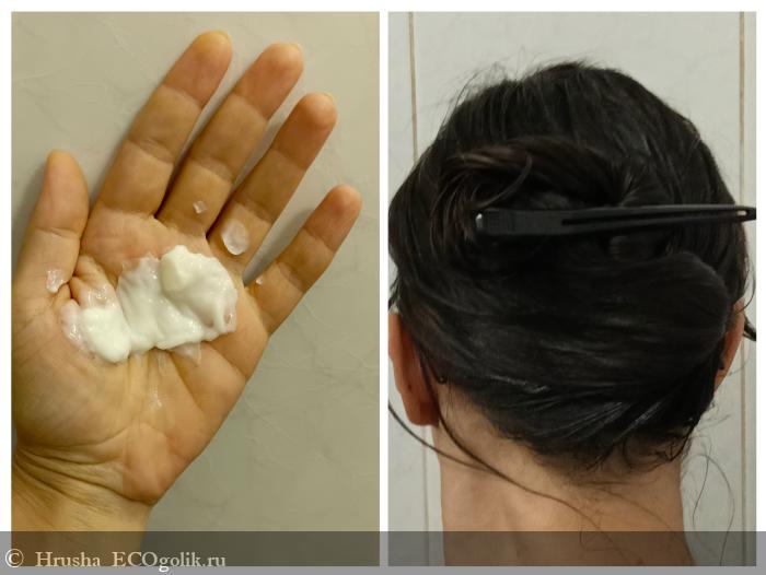 Использую для первой пробы два нажатия - для моих неповрежденных волос этого должно хватать как тест нормальности кондея по насыщенности состава