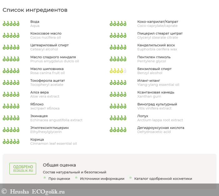 Всё это сочетание ингредиентов очень привлекательно выглядит в комбинации проверки сервиса - тут полно смягчающих компонентов, увлажняющих, регенерирующих... - что и заявлено в назначении крема