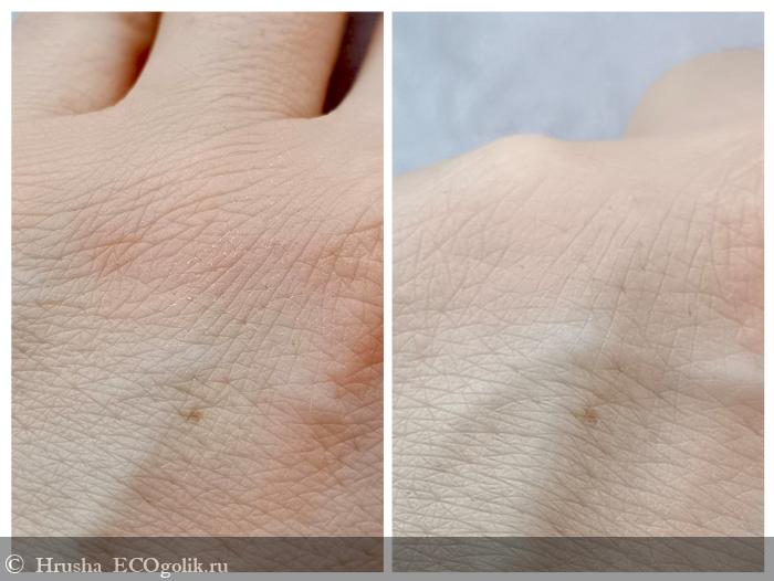 Такая текстура несмотря на густоту легко распределяется, она гладкая, обволакивающая, но не ложащаяся пленкой.