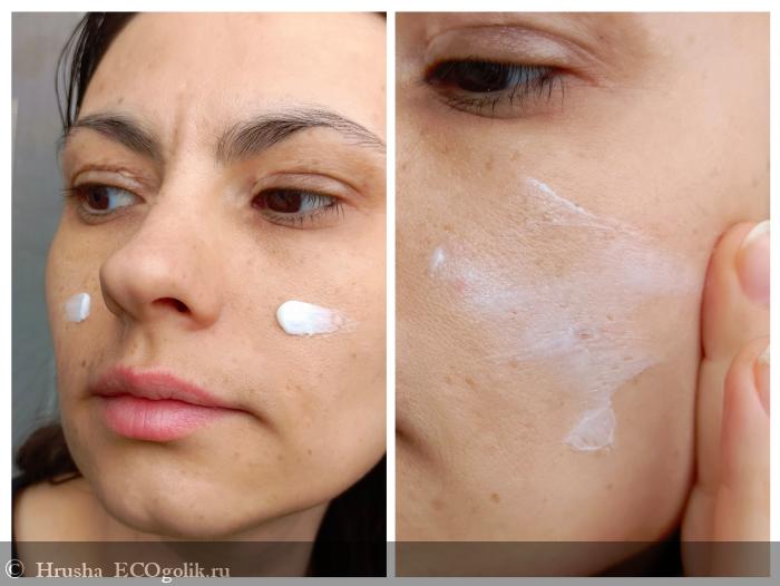 Что по телу, что и по лицу крем отлично легко распределяется, быстро впитывается, не оставляя жирности ни сразу, ни после некоторого времени даже на моих более жирных участках кожи. Для утреннего применения это очень важное свойство, хотя и для вечернего приятное