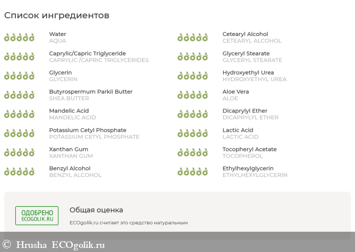 - Натуральный растительный крем с миндальной кислотой для обновления кожи лица и тела.
