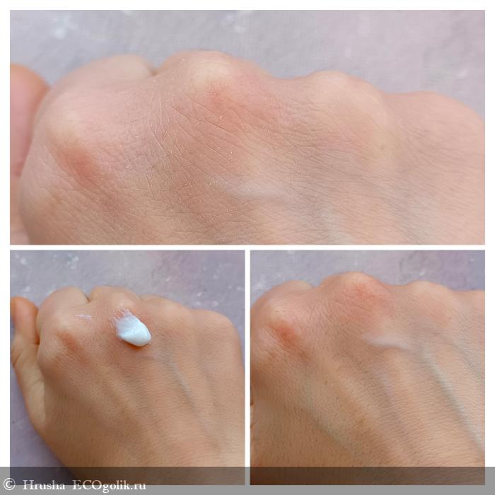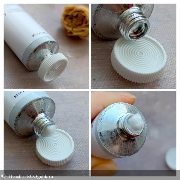 Текстура мягкого кремового суфле - наносится стабильной капелькой, не течет, а дальнейшее распределение происходит гладко и легко, без полосистости и залипания. Крем плотно сидит в тубе и за счет текстуры при открывании сам не вытекает.
