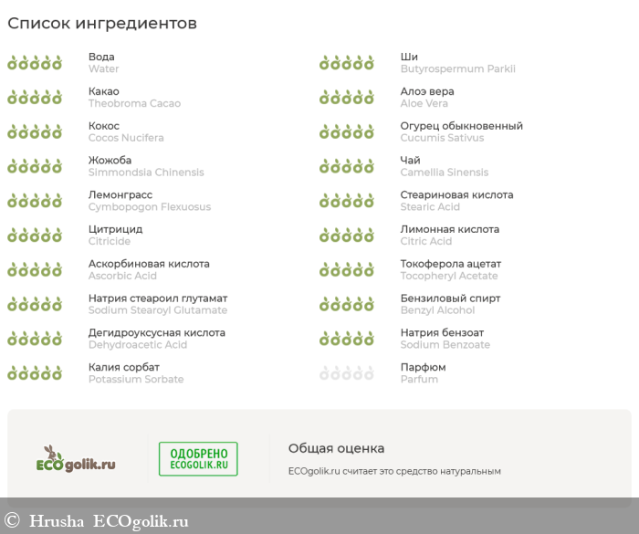 можем посмотреть по INCI на таре и с переводом на сайте