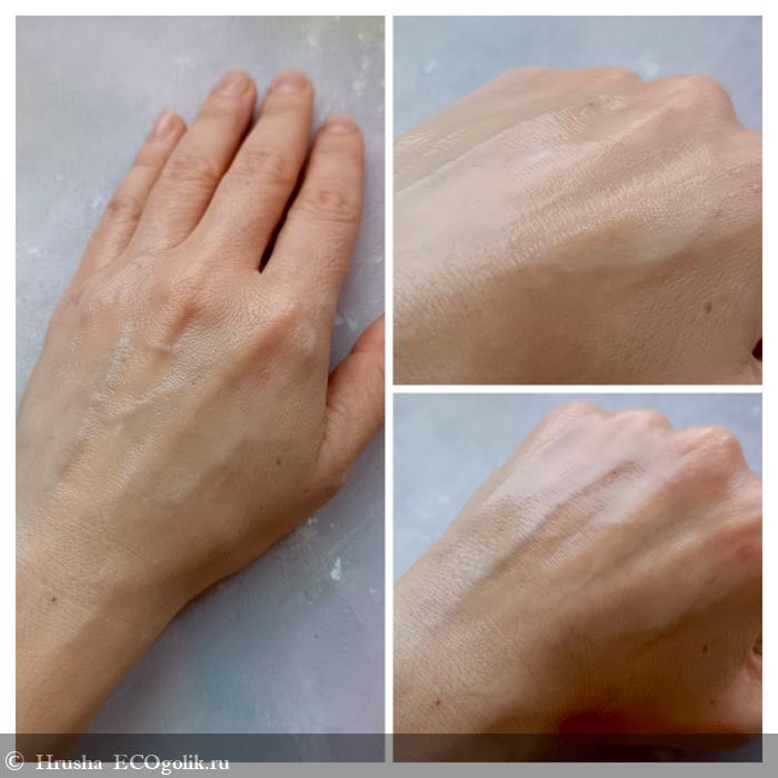 Впитывается мгновенно, не оставляет липкости и жирной пленки, моментально как бы запудривается бархатным гладким финишем - такая текстура прекрасна на бегу и в быту, а питательные "маски" оставим для отдельного основательного ухода.