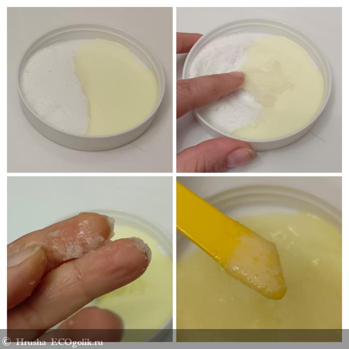 Сама соль сразу не тает, позволяет нормально так поскрабиться и заодно помыться сразу - всё будет зависеть от конкретного геля для душа как базы.