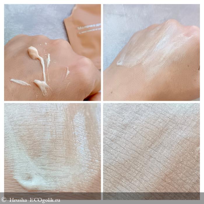 Молочко с шиммером в своей базе также хорошо ухаживает, аромат имеет более парфюмерный, но не агрессивный - ну и за счет шиммера скорее оно на выход, праздник - в зону ключиц и декольте, на открытые руки. Или на лето на загорелую кожу - я уже планирую это осуществить