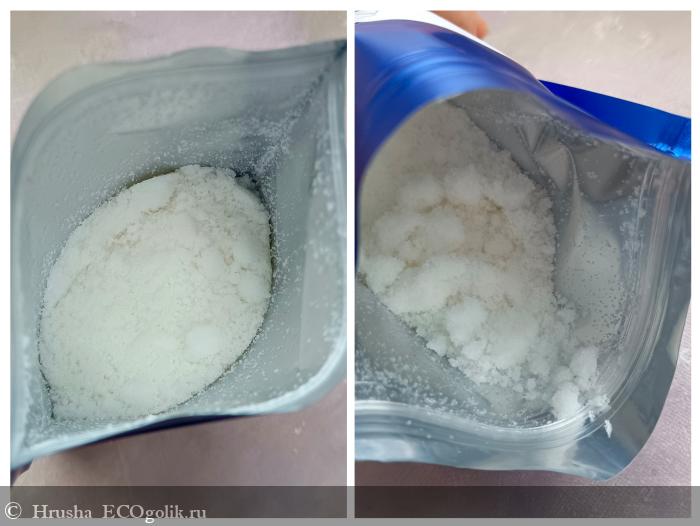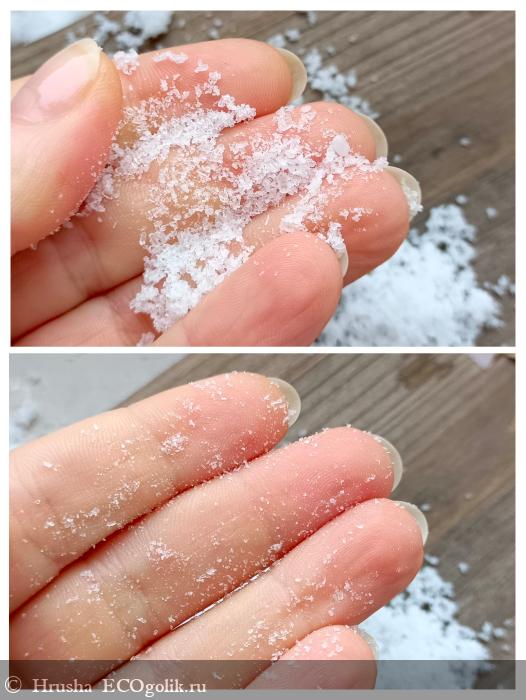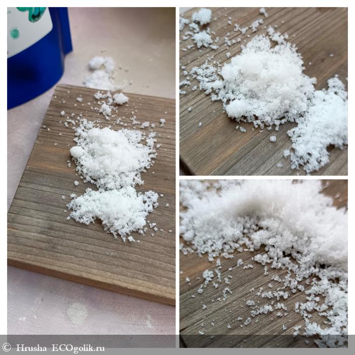 Текстура как я сказала рассыпчатая, но за счет связующих масел, выглядит более структурно, чем просто магниевая соль.