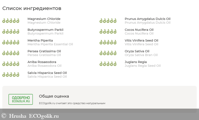 На коже остается приятное питательное послевкусие входящих в состав масел, но оно не сравнимо с жирными типичными скрабами.