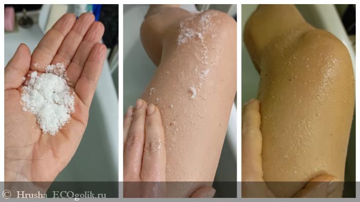 Несмотря на мелкую структуру и не жесткое скрабирование, он реально ощутимо полирует кожу. Такой эффект я и от ванн замечала - я пока не понимаю, как это работает, но кожа становится более гладкой и увлажненной