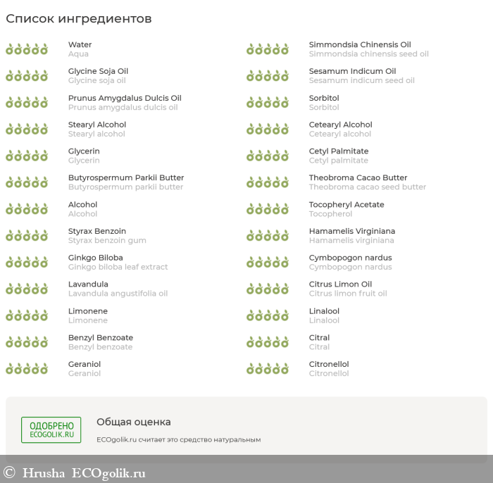 указан по INCI в оригинале и переведен для "нашего" пользователя