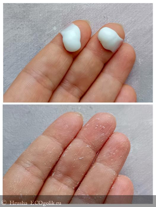 Но убедившись в отсутствии индивидуальной реакции на компоненты, иногда я могла минут 5 дополнительно её подержать, а только потом приступать к пилингу, уделяя больше или меньше внимания разным участкам - микро-шарики все равно не так быстро таяли, чтобы не дать произвести пилинг.