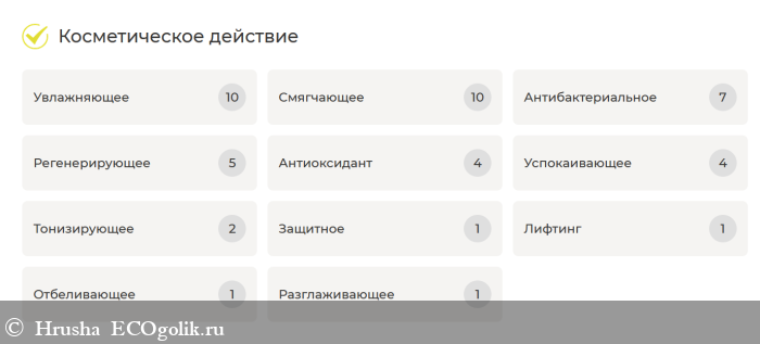 В составе много масел (но благодаря всему составу она не ощущается жирной - а именно смягчающей, как видим в Действии), а также экстрактов.