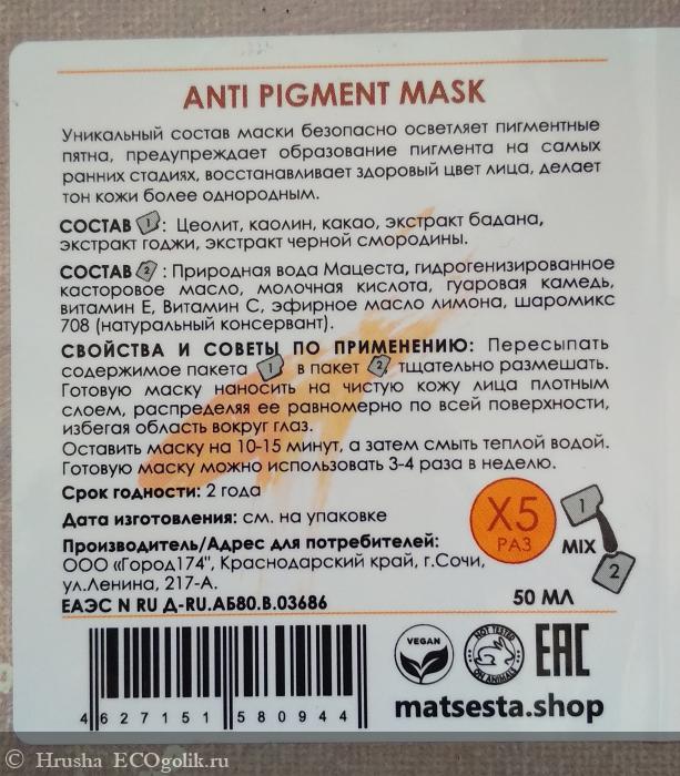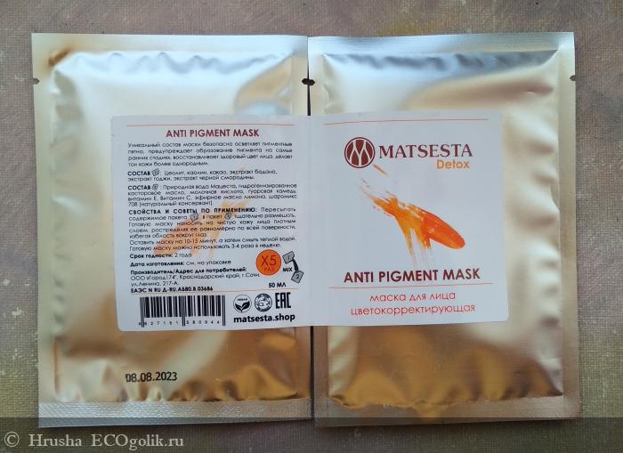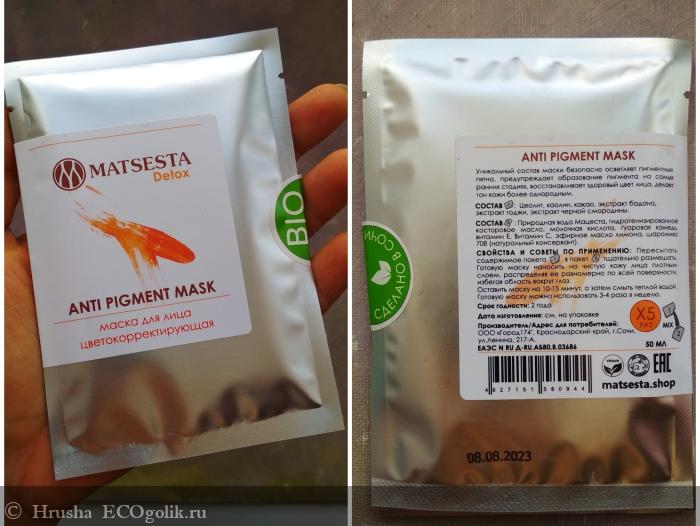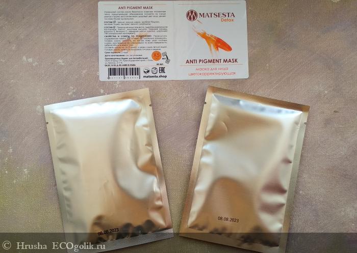 Руководствуясь принципом лучше меньше, да лучше, решила попробовать Цветокорректирующую Маску от MATSESTA - она рассчитана на 5 применений, какого-то сильного вреда от индивидуальной реакции за это время я не получу - потому что в составе нет "жестких отбеливателей", а вот эффект проверю - можно ли за такой мини-курс получить видимый эффект.