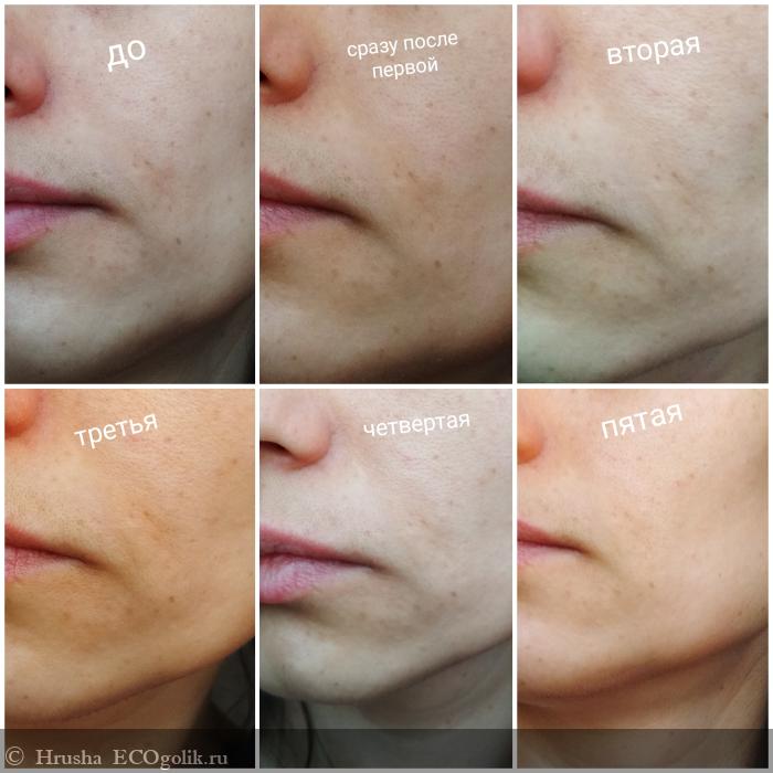 Между первой и второй (перерывчик был небольшой) я сделала мягкий скраб, больше до пятой ничего в промежутках дополнительно не применяла.
