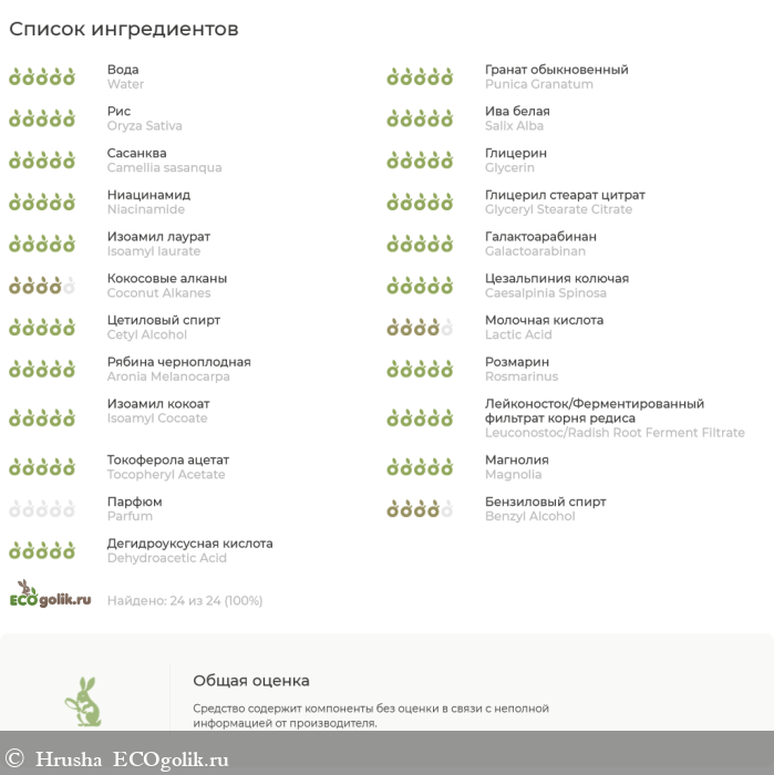 Кроме нерасшифрованной отдушки (хоть и указано, что натуральной) состав одобрен сервисом
