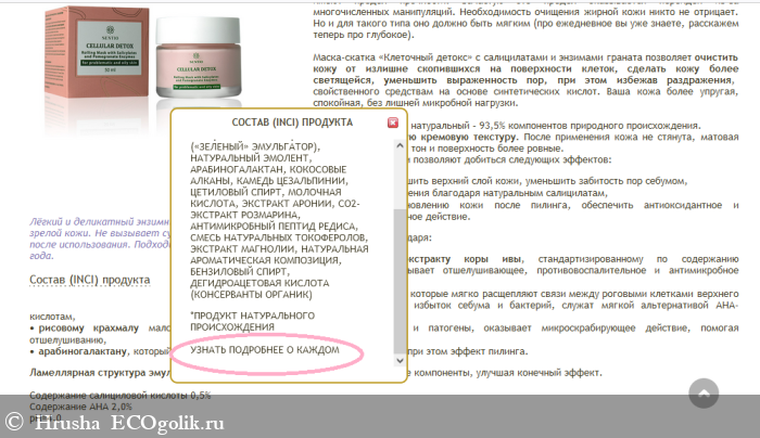 На сайте можно почитать про каждый ингредиент, используемый брендом