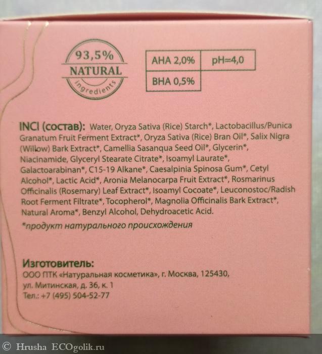 Состав заявлен как максимально натуральный – 93,5% компонентов природного происхождения.