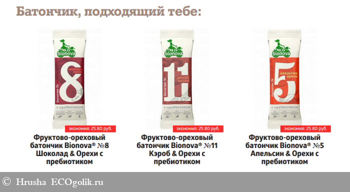 Еще одна интересность: на сайте Bionova можно пройти тест "Подбери свой батончик". Рекомендую