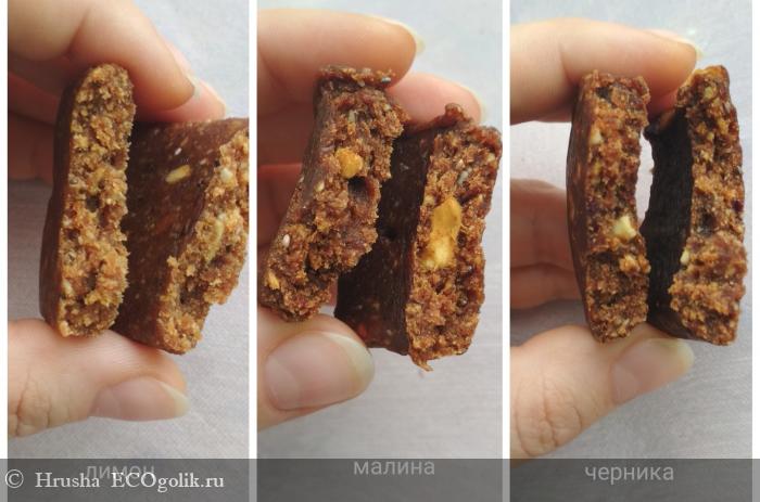. Чувствуется сразу при открытии упаковки. Как малиновый джем в лучших традициях, но не приторный. Сильного послевкусия и сладости, которые хочется запить не оставляет. Консистенция (малинового и также других) нежная, к зубам не липнет, орешки жестко не хрустят. Но при этом он не слишком мягкий - нормально переносит день катания на велосипеде, не превращается в месиво, держит форму, к упаковке не прилипает