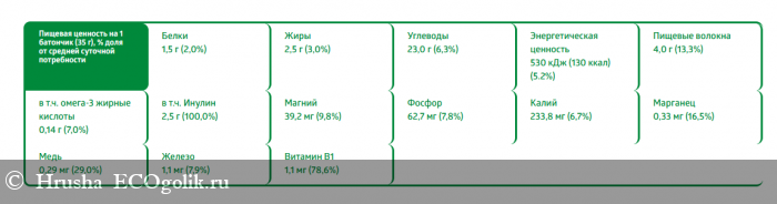 - Содержит инулин – пребиотик, улучшающий микрофлору кишечника, стимулирующий рост и активность полезных бифидобактерий;