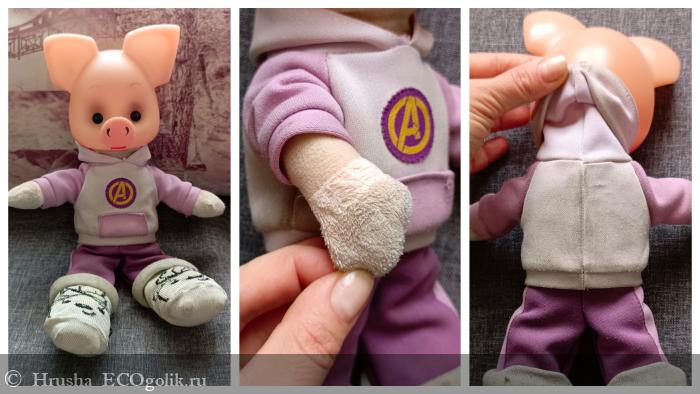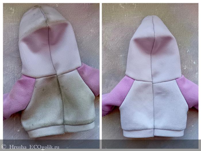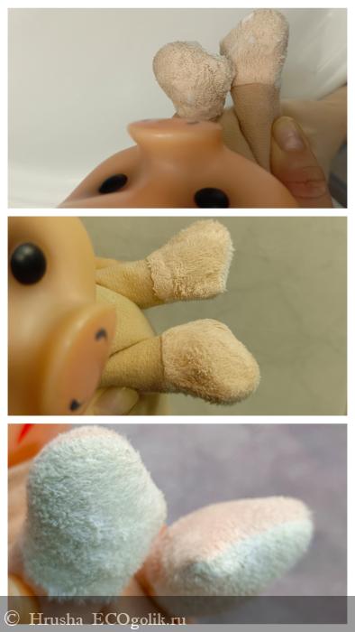 Много одежды показывать не буду - принцип одинаковый. Пример простоты, скорости и качества отстирывания покажу на костюмчике Хрюши - стираю его раз в год после его летних похождений на даче. Машинка так не отстирывает даже на режиме постельного белья!!!