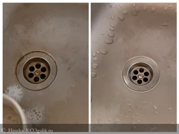 и прочее, само смывается легко - и никаких остатков более агрессивной химии, даже если она была бы из экологичного сегмента.