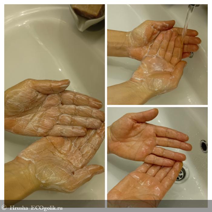 Сопровождает мытье приятный, но ненавязчивый аромат - натуральному вайбу соответствует.