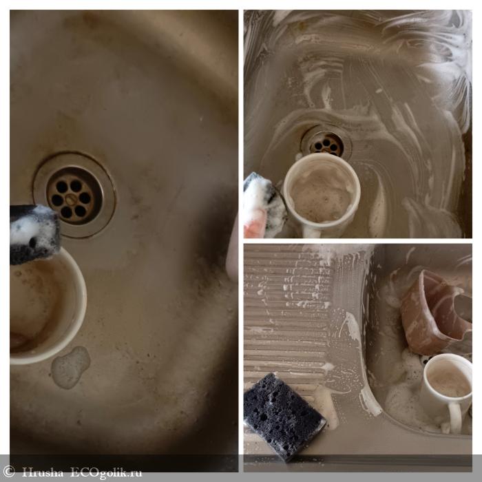 Так как на губке образовалось очень много пены, я решила заодно помыть и раковину (и плиту даже протереть хватило).