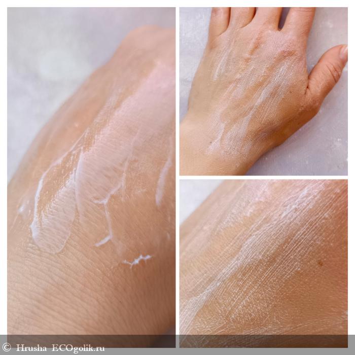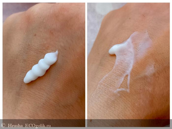 Текстура кремовая, достаточно густая. Не ощущается слишком жирной, скорее тающая, влажная, гладкая.