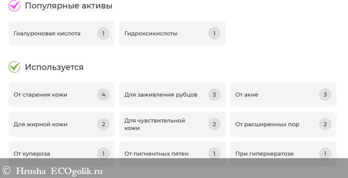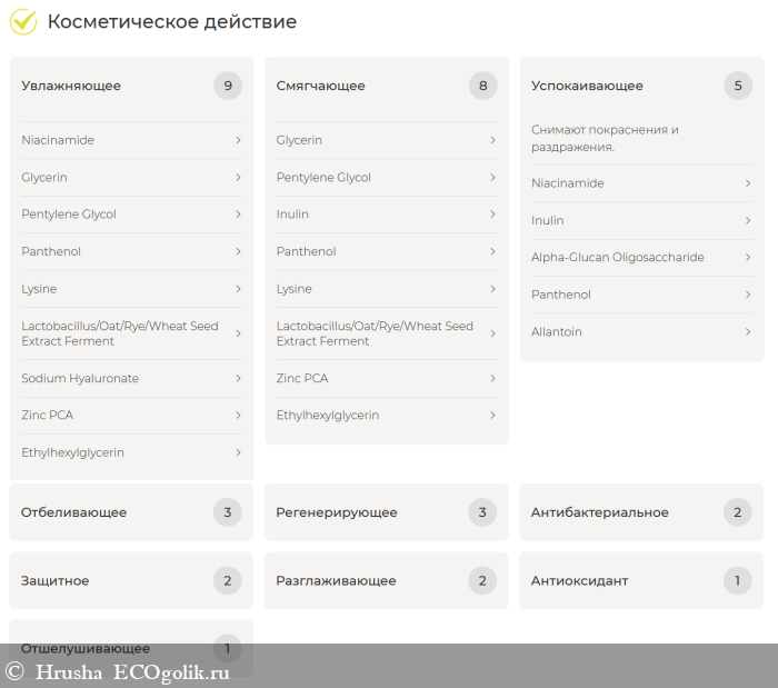 кроме акне, видим даже больше активов для увлажнения и антиэйдж
