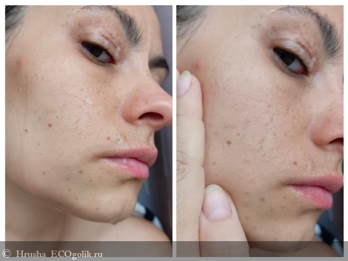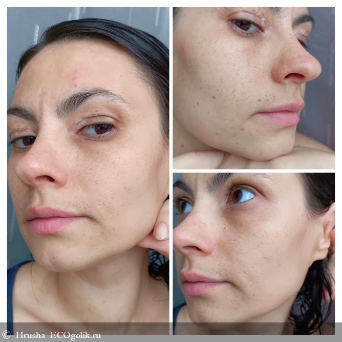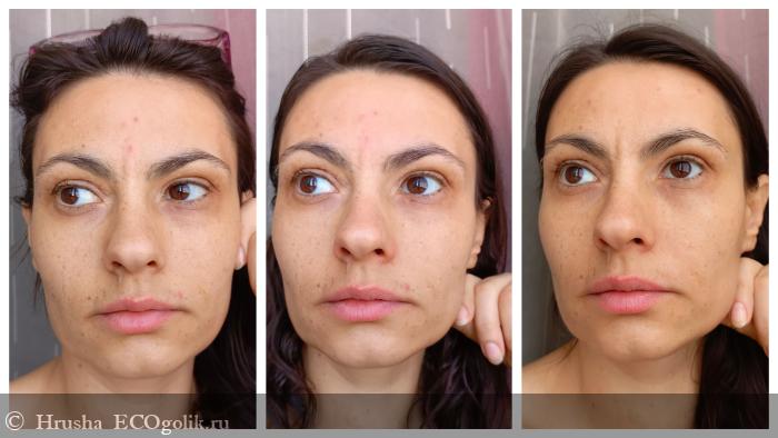 Ну а на мою более жирную и проблемную Т-зону влияет так как и заявлено - выработка себума в норме, к вечеру кожа не имеет излишнего жирного блеска, но выглядит умеренно-сияющей, ну просто кожей живого человека
