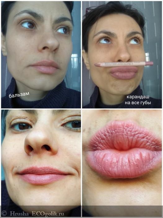 Ну и вот как раз плотный слой бальзама и карандаш сверху - никакой сухой куриной жопки нет
