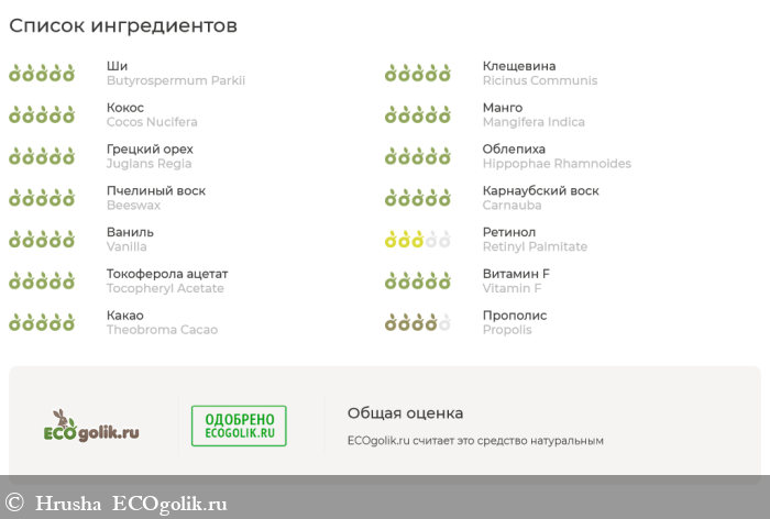 (начала сначала писать, что особенно меня радует манго...ну и облепиха, так, ну и прополис, и витамин F... - короче, подумала и почти весь состав записала в "особенно радует", потом удалила фразу, и оставляю тут эти пост-размышления