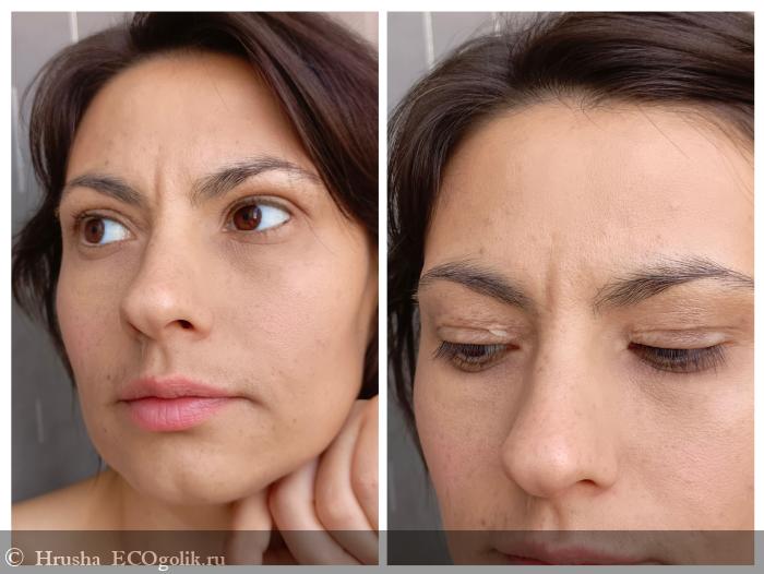 Я не разделала нанесение на лицо и на веки отдельно - наносила просто везде сразу, ну это и логично - просто как факт указано, что крем подходит и для зоны век тоже. Для меня это отлично, потому что я очень редко использую отдельные средства для этой зоны.