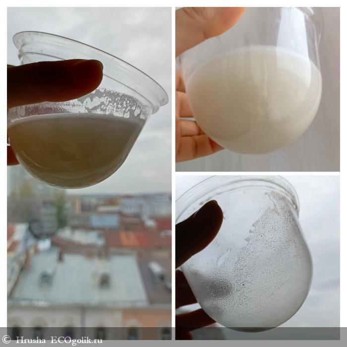 Хоть тут и концентрация в сравнении с ванной большая, молочко растворяется быстро и полностью.