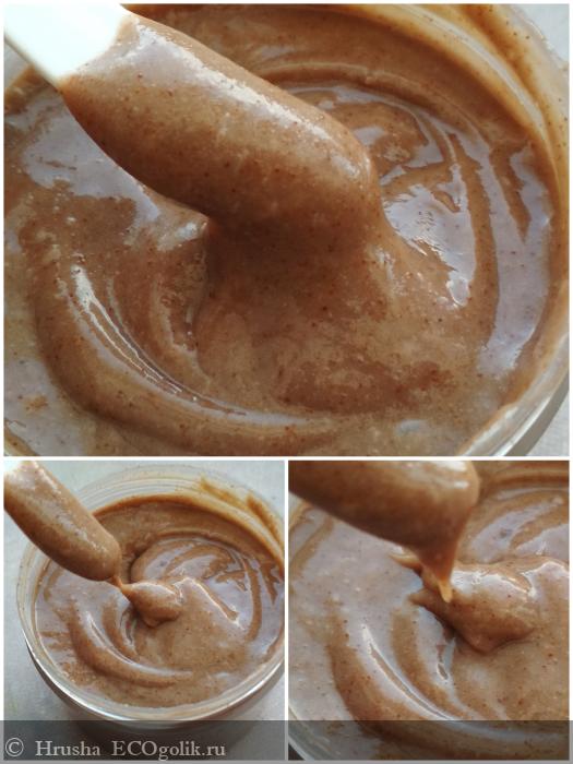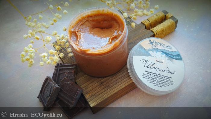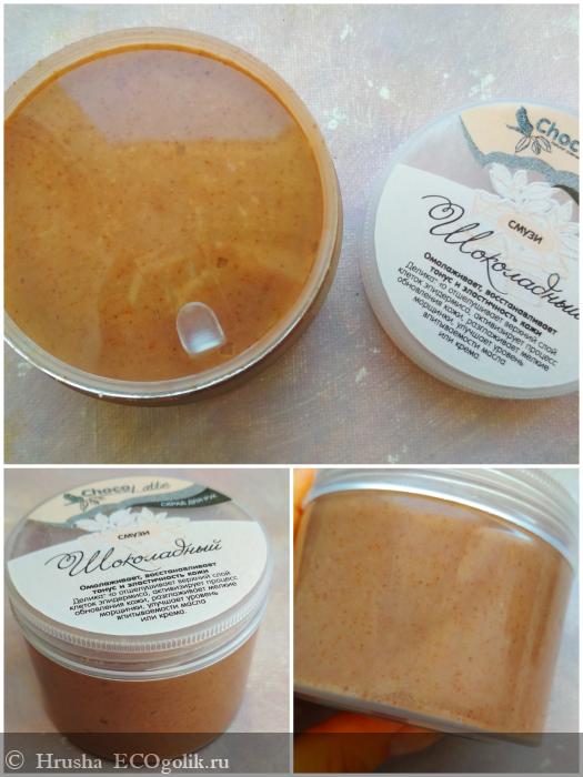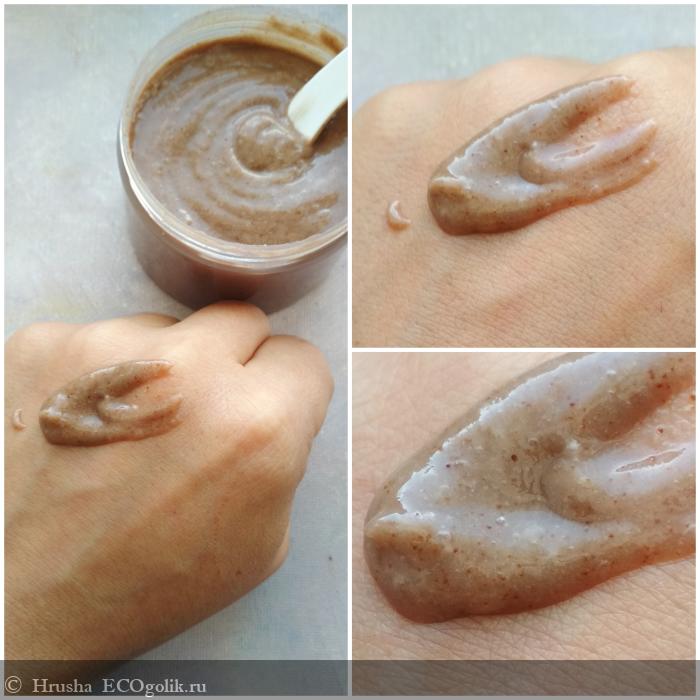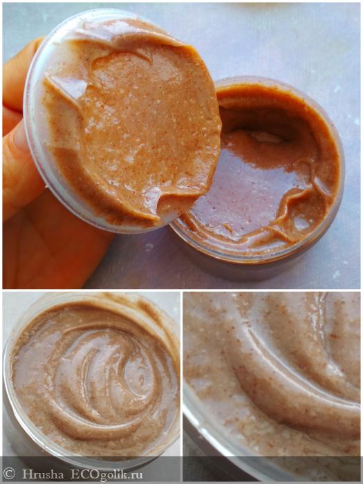 Под крышечкой видим жидковатую для классических скрабов текстуру цвета молочного шоколада.