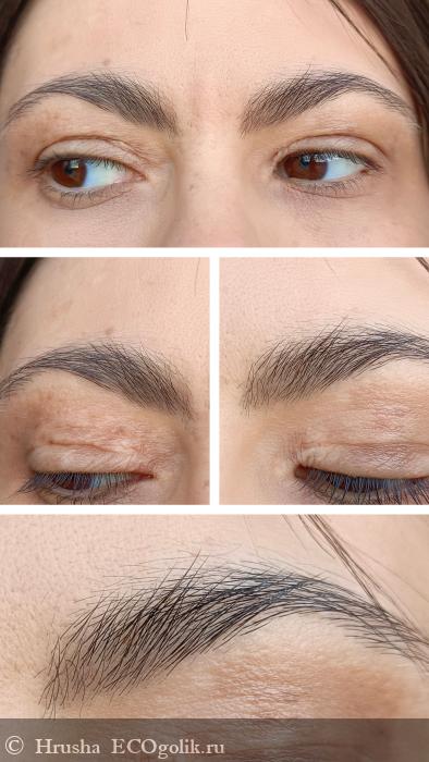 - быстро высыхает и становится незаметным, сохраняя естественный вид бровей, при этом не оставляет белый налет, не склеивает волоски, не создает "мокрого" эффекта.