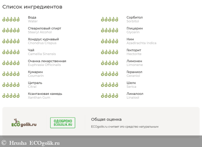 - не тестируется на животных, не обладает ярко выраженными химическими свойствами фиксации. Эффект стайлинга только за счет натуральных компонентов.