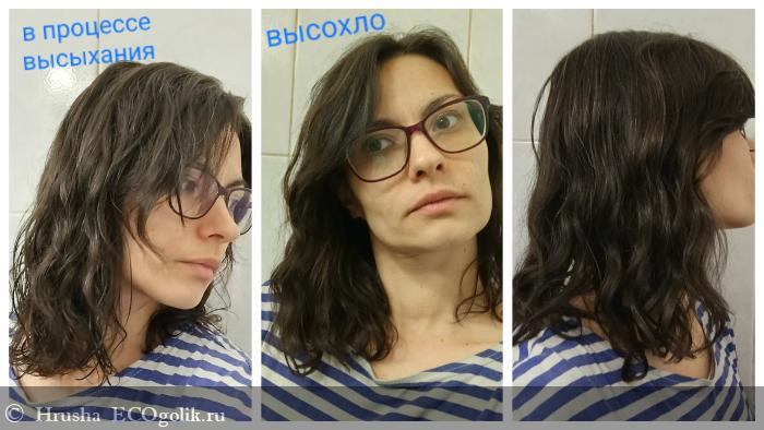Тут я мыла голову утром, вот так выглядели волосы сразу после высыхания и последняя фотка к вечеру - локоны гладкие, но они есть. Блеск, отсутствие пушистости - в общем, всё то, к чему я уже привыкла с этим уходом