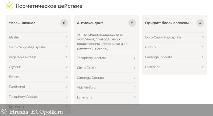 Кроме очевидного кондиционирующего эффекта, который я предположила сразу, мне нравится особенно увлажнение и блеск