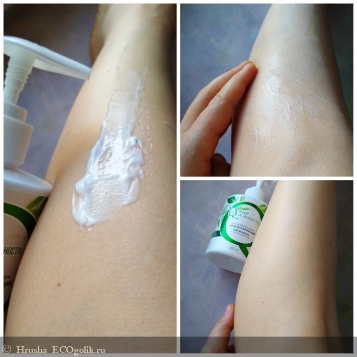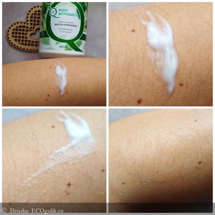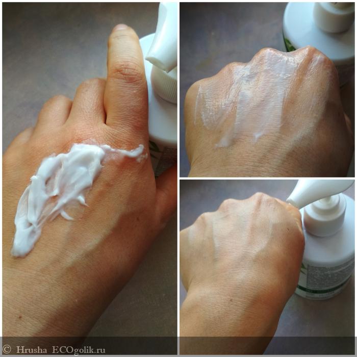 Цвет крема белый, плотный. При нанесении не полосит, достаточно быстро впитывается.