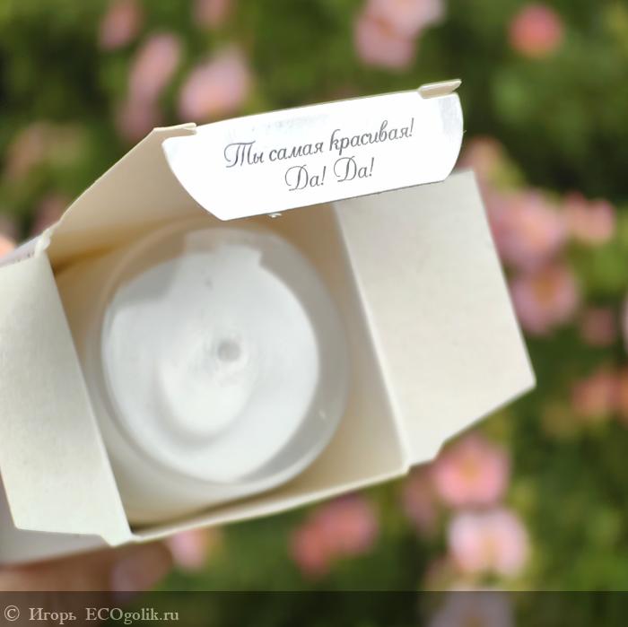 Коробочка выполнена в мягких пастельных тонах. Коробочка-нежность – не просто упаковка, а опыт, который погружает меня в атмосферу спокойствия и гармонии, готовясь к заботе о себе. Дизайн приятный и успокаивающий.